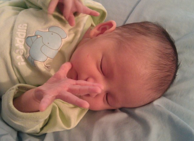 Amy loves Daddy and Daddy's thumb is just the right size!